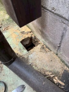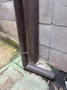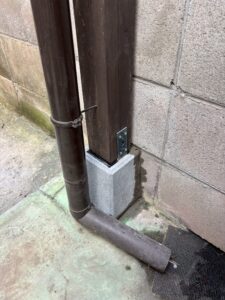 基礎と新しい柱の取り付けにあたって、一旦雨樋を撤去します。