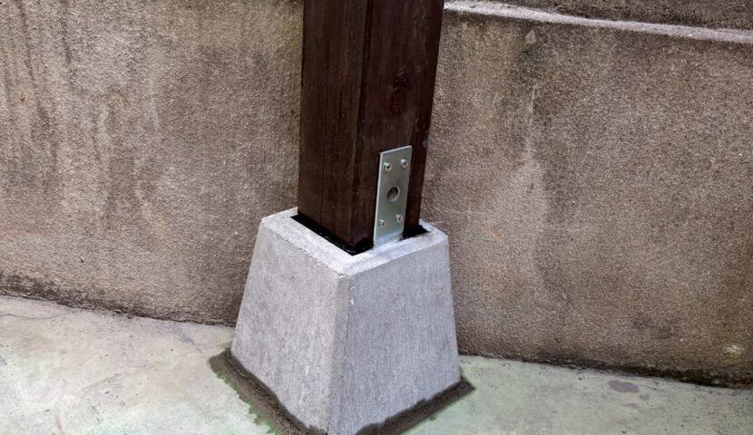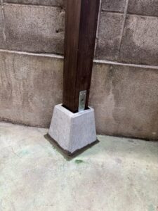 基礎をきっちりと設置して柱のふもとを保護しました。