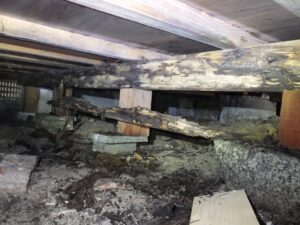 床下を確認したところ、湿気も多く、床が抜ける寸前まで木材がシロアリに食べられていました。