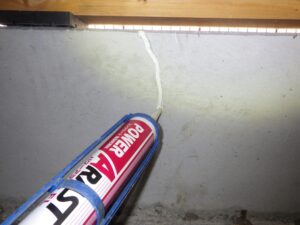 まず、パワーアラストという、コンクリート補修材をひび割れ部分に塗ってきます。