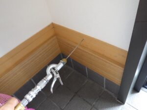 また、家の中でも玄関などはシロアリ被害に遭いやすいので、木材部分に直接薬剤を注入しました。